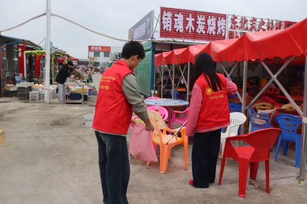 活動(dòng)中,黨員教師帶頭示范,志愿者們分工協(xié)作,攜帶工具清理路面垃圾、油污及商鋪衛(wèi)生死角,以實(shí)干改善街區(qū)環(huán)境,將“藝心育人”內(nèi)涵轉(zhuǎn)化為服務(wù)群眾的實(shí)際行動(dòng)。