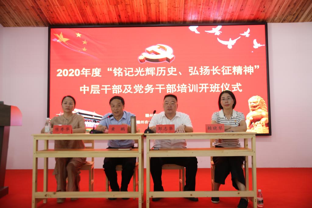7月26日上午,贛州職業(yè)技術(shù)學(xué)院、贛州農(nóng)業(yè)學(xué)校、贛州技師學(xué)院三校在于都祁隆山初心紀(jì)紅培基地舉辦2020年度“銘記光輝歷史、弘揚(yáng)長征精神”中層干部及黨務(wù)干部培訓(xùn)班開班式,贛州職業(yè)技術(shù)學(xué)院、贛州農(nóng)業(yè)學(xué)校黨委書記鄒志華,贛州職業(yè)技術(shù)學(xué)院院長、贛州技師學(xué)院黨委書記黃鵬,贛州農(nóng)業(yè)學(xué)校校長賴曉琴、贛州技師學(xué)院院長陳秀華,以及三校領(lǐng)導(dǎo)班子成員、中層干部及黨務(wù)干部一百余人參加了開班式。