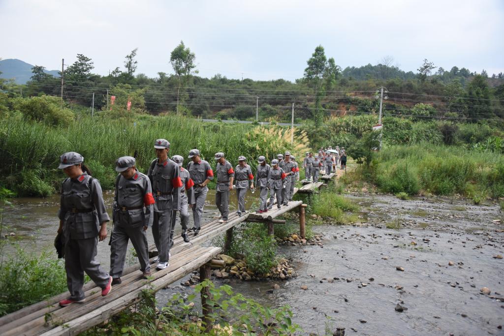 下午,為傳承紅色基因,弘揚(yáng)長征精神,進(jìn)行了實(shí)踐教學(xué)——重走紅軍長征小道。1934年10月中旬,中央紅軍渡過于都河后,中共中央、中革軍委以及紅三軍團(tuán)、紅五軍團(tuán)和紅八軍團(tuán)從這里秘密行軍,向西進(jìn)發(fā),突破第一道封鎖線。長征小道全長19.34公里,風(fēng)景優(yōu)美,古木參天,竹海浩蕩。大家統(tǒng)一著紅軍服,手握軍旗、步槍、刀等,踏上紅軍長征的光輝足跡,體驗(yàn)當(dāng)年紅軍長征的路途艱辛,領(lǐng)悟到不畏艱險(xiǎn),頑強(qiáng)拼搏的長征精神和蘇區(qū)精神。路途中,為表達(dá)對(duì)黨和國家的深情厚愛,大家還齊唱了《歌唱祖國》。
