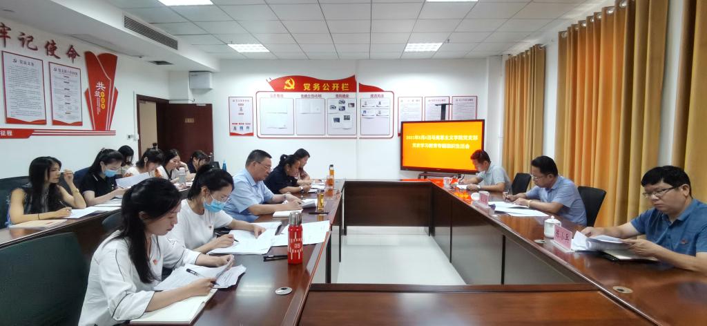會(huì)上,馬克思主義學(xué)院黨支部書記宋華報(bào)告了2021年上半年黨支部工作開展情況,通報(bào)了馬克思主義學(xué)院黨支部檢視問題情況。隨后,黨支部全體黨員圍繞“學(xué)習(xí)習(xí)近平總書記在慶祝中國共產(chǎn)黨成立100周年大會(huì)上的重要講話精神;學(xué)習(xí)習(xí)近平新時(shí)代中國特色社會(huì)主義思想和黨中央指定學(xué)習(xí)材料情況;對(duì)照黨史學(xué)習(xí)教育目標(biāo)要求,自身在堅(jiān)定理想信念、增強(qiáng)歷史自覺、弘揚(yáng)優(yōu)良傳統(tǒng)、加強(qiáng)黨性錘煉等方面存在哪些差距和不足;黨員先鋒模范作用發(fā)揮、立足崗位履職盡責(zé)、為身邊群眾做實(shí)事好事情況,下一步整改措施”等方面逐一發(fā)言,談體會(huì)感悟,找差距不足,開展批評(píng)與自我批評(píng),深刻剖析原因,闡明整改措施。