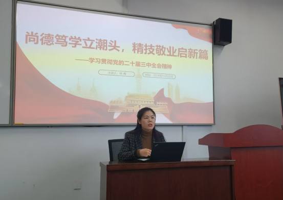 在宣講會(huì)上,林梅以《尚德篤學(xué)立潮頭,精技敬業(yè)啟新篇》為主題,緊密?chē)@黨的二十屆三中全會(huì)的核心內(nèi)容,從“深刻認(rèn)識(shí)進(jìn)一步全面深化改革的重要意義”“準(zhǔn)確把握進(jìn)一步全面深化改革的豐富內(nèi)涵”以及“結(jié)合學(xué)院實(shí)際,貫徹落實(shí)全會(huì)精神”這三個(gè)方面,對(duì)全會(huì)精神進(jìn)行了深入淺出的講解。此次宣講內(nèi)容精準(zhǔn)透徹,語(yǔ)言生動(dòng)鮮活,既全面系統(tǒng)又突出重點(diǎn),具有很強(qiáng)的政治性與理論性,為與會(huì)人員深刻領(lǐng)會(huì)全會(huì)精神提供了幫助。