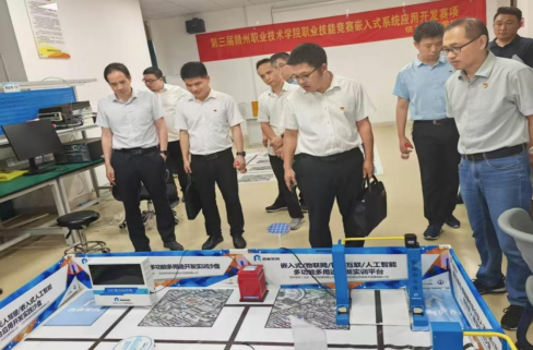 會(huì)后,全體人員前往信息工程學(xué)院實(shí)訓(xùn)室參觀調(diào)研,走訪了人工智能實(shí)訓(xùn)基地、物聯(lián)網(wǎng)創(chuàng)新實(shí)訓(xùn)室等教學(xué)實(shí)踐場(chǎng)地。信息工程學(xué)院教師介紹了設(shè)備操作流程以及各實(shí)訓(xùn)室在教學(xué)、競(jìng)賽及產(chǎn)學(xué)研合作中的應(yīng)用場(chǎng)景,雙方就依托實(shí)訓(xùn)資源深化人才培養(yǎng)合作事宜展開積極交流。
