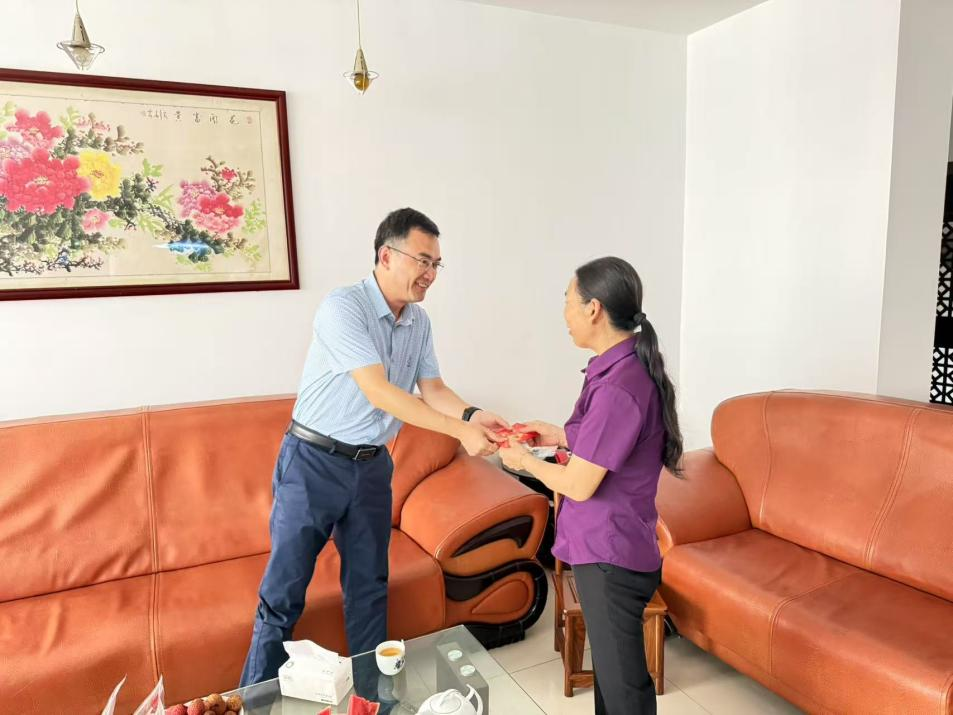 在老黨員家中,校領導仔細詢問他們的身體狀況、生活情況,叮囑他們要保重身體,有困難及時向黨組織反映。同時殷切希望老同志們退休不褪色、離崗不離黨,繼續發揮政治優勢、學識優勢、閱歷優勢,一如既往關心支持學校發展,為高質量發展貢獻余熱。