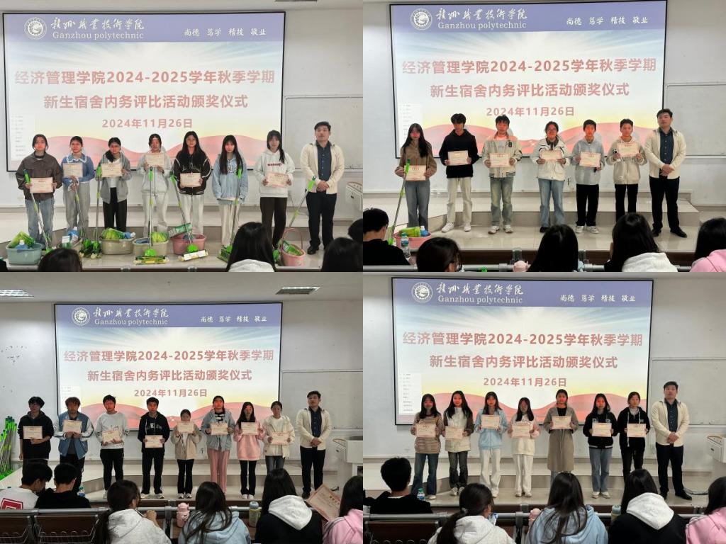 為強化宿舍管理在學生教育中的作用,并營造健康、和諧的宿舍文化氛圍,經濟管理學院成功舉辦了本學年新生宿舍內務評比表彰大會。各獲獎宿舍寢室長代表及相關人員齊聚一堂,共同見證這一彰顯學院宿舍文明建設成果的重要時刻。