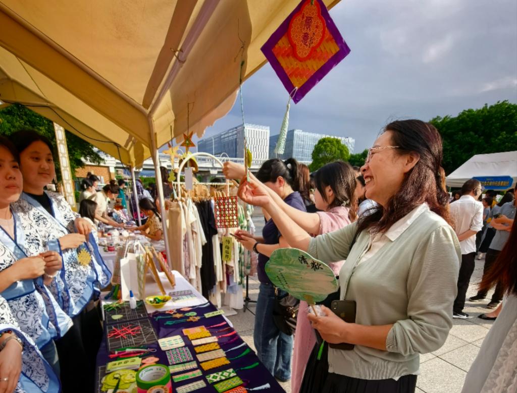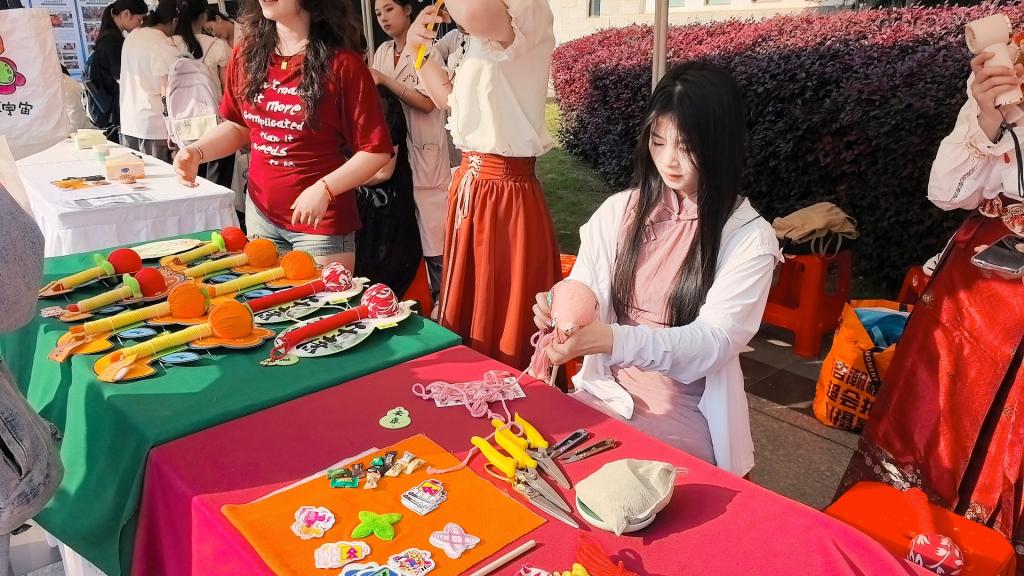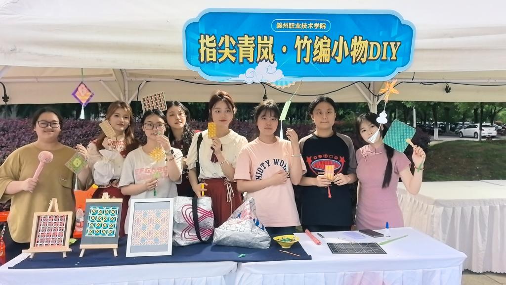 活動現場,藝術設計學院教師利丹、梁丹妮帶領學生們,將精心制作的“艾草錘” 和 “竹編小物”帶到現場參展。這些作品巧妙融合了傳統技藝與現代設計,吸引了眾多師生的目光,成為活動現場的熱門產品,充分體現了藝術設計專業的特色與學生的創新實踐能力,收獲了現場的一致好評。此次活動不僅為我院師生提供了展示自我的平臺,也促進了校園文化的交流與傳播,展現了我院在藝術設計教育方面的卓越成果。