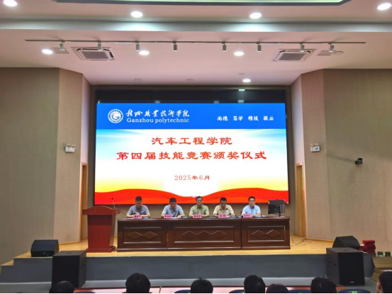 6月13日下午,汽車工程學院第四屆技能競賽頒獎儀式在公共實訓中心報告廳舉行。學校黨委委員、組織部部長溫繼榮,汽車工程學院全體老師、獲獎學生及24級學生代表等共計300余人參加了此次頒獎儀式。