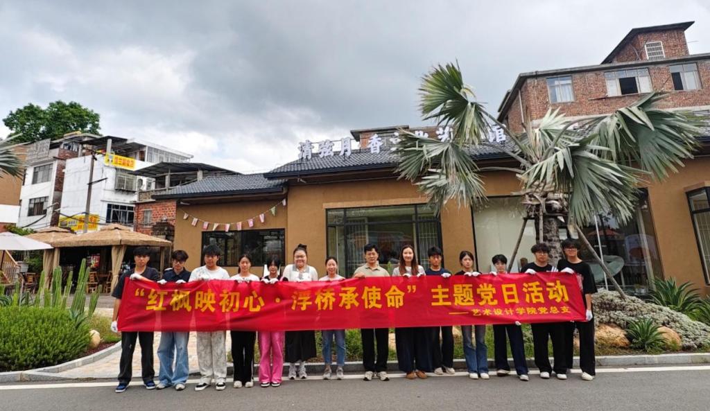 活動當(dāng)日,黨員教師帶領(lǐng)志愿者佩戴黨徽、團徽,結(jié)合老浮橋歷史文化與贛南地域特色,為市民、游客定制文創(chuàng)手繪,在各種條幅上繪制浮橋紅楓、游船等圖案;“藝術(shù)裝置體驗區(qū)”,志愿者搭建“浮橋精神”主題互動裝置,指導(dǎo)群眾參與拼裝,講解裝置所蘊含的“連接往來、堅韌承重”內(nèi)涵。黨員教師全程指導(dǎo),同步傳遞“藝心育人”和“以藝術(shù)服務(wù)社會”理念。