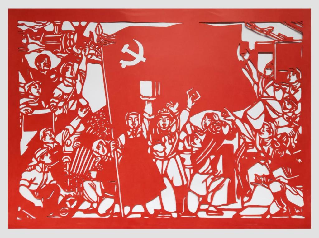 本作品運用刻刀刀尖刻畫,刻畫前先要打印底稿,運用紅色的卡紙,然后根據畫的內容一步步刻畫,對于刻畫人來說需要極大的耐心和毅力,主要考驗我們的手尖力量,因為它的線條很細所以每一步都需要很小心刻畫。我們用心雕刻,獻給中國共產黨建黨100周年!