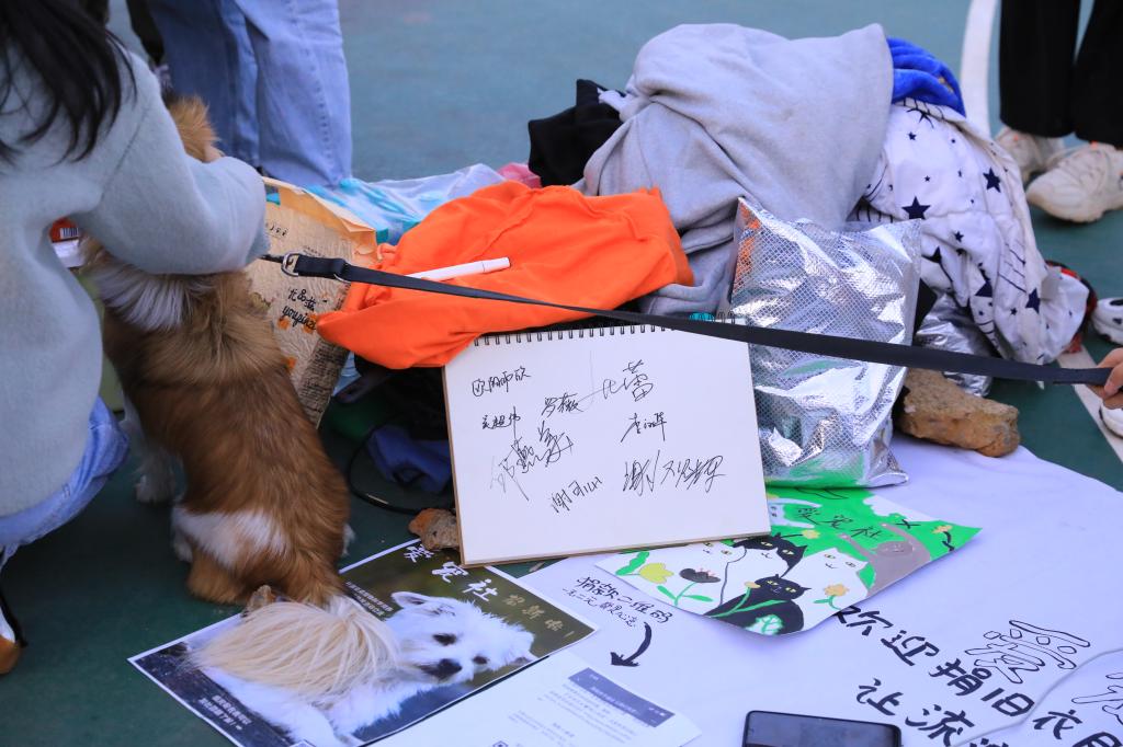 活動過程中,有提供閑置音響、小風扇等日常用品的學長學姐,也有零售浪漫手工包花的小哥哥。更讓人眼前一亮的是,學院寵物醫療專業的學生,架設起了一個攤位,積極宣傳如何正確養寵、維護生態和諧及物種多樣性等科學理念,并為流浪動物征集過冬物資。