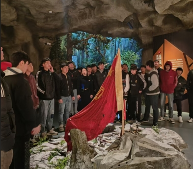 師生們首先參觀了南方紅軍三年游擊戰(zhàn)爭紀(jì)念館。這座紀(jì)念館于2021年7月30日正式開館,坐落在大余縣黃龍鎮(zhèn),占地面積210.7畝,建筑面積19745.3平方米。紀(jì)念館以南方紅軍三年游擊戰(zhàn)爭的主要戰(zhàn)斗歷程為主線,通過詳盡、權(quán)威的史實(shí)和嶄新的布展方式,全方位展示了南方八省十五個(gè)地區(qū)開展游擊戰(zhàn)爭的光輝歷史。師生們在這里聆聽了講解員的生動(dòng)解說,觀看了珍貴的歷史文物和圖片,深切感受到了革命先輩們?yōu)榱死硐牒托拍畈磺粨系亩窢幘瘛?/p>