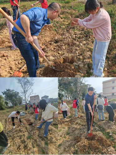 在植樹過程中,呈現出一幅幅溫馨而動人的畫面。孩子們在師生們的幫助下,親手種下了屬于自己的小樹苗。他們小心翼翼地扶正樹苗,用稚嫩的小手一鍬一鍬地填土,眼中閃爍著對未來的憧憬和期待。每一棵樹苗的栽種,都承載著孩子們對大自然的熱愛和對綠色生活的向往。
