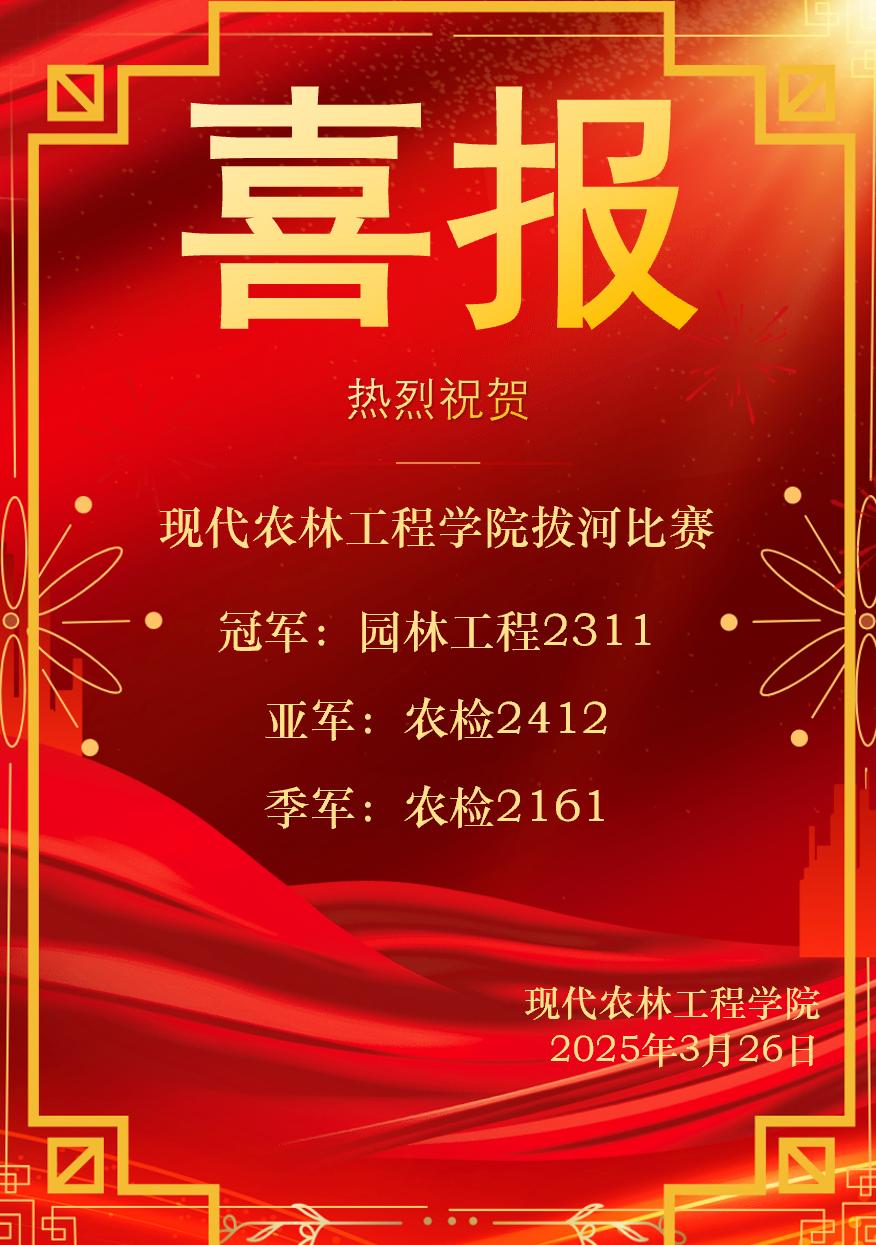為豐富學生課余生活、強健體魄,增強班級凝聚力,加深各班級間的友誼,現代農林工程學院于3月26日開展了拔河比賽,現場熱鬧非凡,各個班級隊伍都展現出了超強凝聚力和拼搏精神,為全院師生帶來了一場精彩紛呈的體育狂歡盛宴。