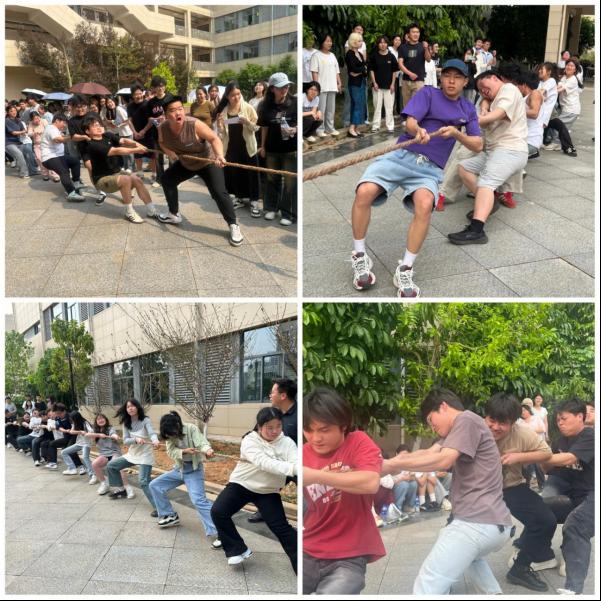參賽隊員們個個面紅耳赤,汗水濕透了他們的后背,但他們依然咬緊牙關,拼盡全力。每一次的用力拉扯,每一次的齊聲吶喊,他們為班級榮譽而戰的決心。現場觀眾的熱情也絲毫不遜色于參賽隊員。他們圍聚在比賽場地周圍,組成了一道熱情洋溢的“人墻”,聲嘶力竭地為自己支持的班級吶喊助威。加油聲、歡呼聲此起彼伏,一浪高過一浪,整個校園沉浸在一片歡樂而緊張的氛圍之中。