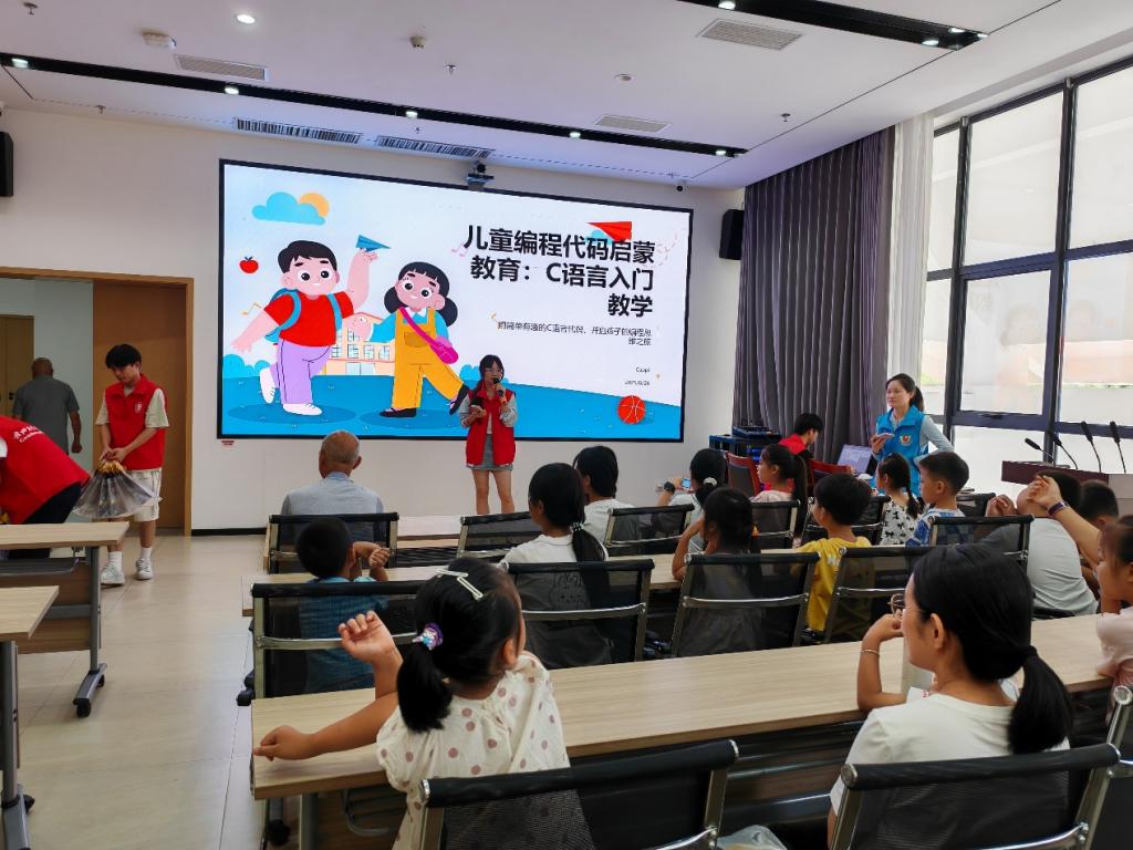 緊接著,隊(duì)員們將專業(yè)所學(xué)知識(shí)轉(zhuǎn)化成為基層科技教育的火種,給當(dāng)?shù)貎和瘞硪粓鰟e開生面的兒童編程代碼啟蒙教育。實(shí)踐隊(duì)員從生活場景切入,認(rèn)真為孩子們和部分在場家長講解不同年齡段兒童對編程代碼的認(rèn)知特點(diǎn),如何在日常學(xué)習(xí)生活中激發(fā)學(xué)習(xí)C語言編程興趣以及如何利用編程培養(yǎng)自身邏輯創(chuàng)造性思維,把專業(yè)術(shù)語轉(zhuǎn)換為孩子們通俗易懂的語言,比如程序的運(yùn)行是一步步的命令集合,其實(shí)就是在給“小老虎”下達(dá)指令。