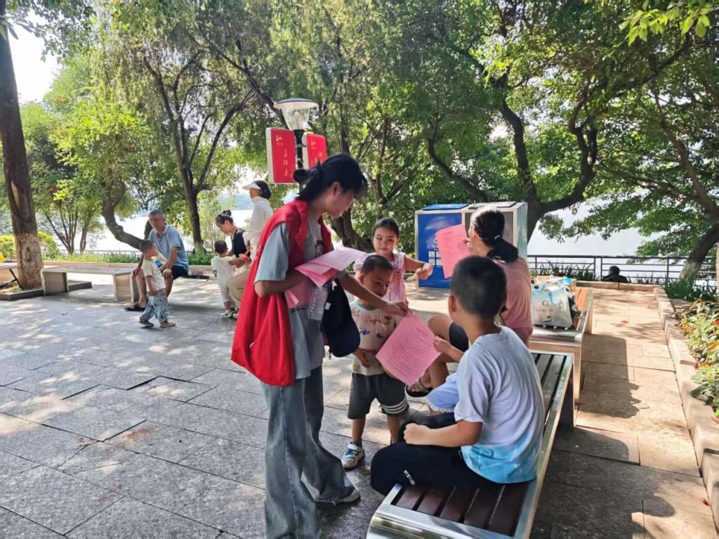 為提高群眾尤其是青少年的防溺水安全意識(shí),實(shí)踐隊(duì)在活動(dòng)過程中積極開展暑期防溺水宣傳。隊(duì)員們通過提前制作并發(fā)放《防溺水安全宣傳單》、現(xiàn)場為群眾講解防溺水安全知識(shí)等方式,向身邊過往群眾詳細(xì)介紹溺水事故的危害、防溺水安全六不準(zhǔn)的基本知識(shí)和遇到溺水情況時(shí)的正確施救方法。同時(shí),他們對周邊水域進(jìn)行全面巡查,隊(duì)員們仔細(xì)觀察河道周邊環(huán)境是否存在安全隱患。經(jīng)過隊(duì)員們細(xì)心觀察,隊(duì)員們發(fā)現(xiàn)河道邊有些護(hù)欄已被損壞,渡口處未設(shè)安全護(hù)欄等問題,將排查出的問題及時(shí)跟團(tuán)縣委反饋。