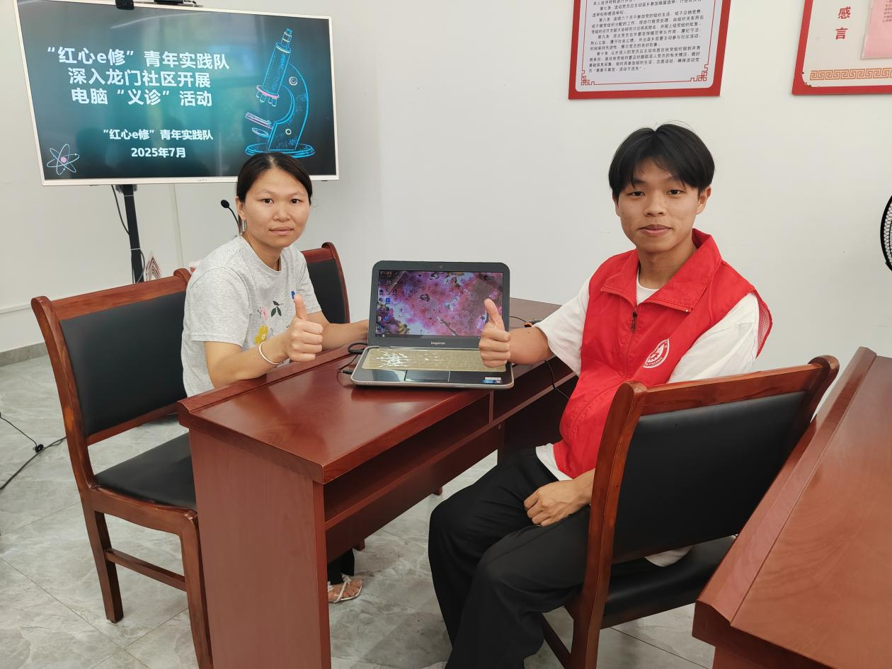 當(dāng)群眾看到那無法開機(jī)或經(jīng)常卡頓無反應(yīng)的電腦重新開機(jī)恢復(fù)流暢時(shí),他們激動(dòng)萬分,向維修隊(duì)員連聲道謝與點(diǎn)贊,隊(duì)員們內(nèi)向也很高興充滿了成就感。現(xiàn)場徐女士看到自己兩臺(tái)電腦在隊(duì)員們巧而辛苦的維修后都能正常使用時(shí),她感動(dòng)地說到:“多虧了你們辛苦的維修才讓我的電腦恢復(fù)生機(jī),是你們拯救了它們,太感謝你們了!”盡管維修過程中遭遇諸多挑戰(zhàn),但他們充分發(fā)揚(yáng)“工匠精神”,始終堅(jiān)持,通過查閱資料不斷嘗試,最終克服困難,讓舊電腦“重獲新生”。檢修電腦過程讓隊(duì)員們深刻體會(huì)到堅(jiān)持與鉆研的重要性,看到群眾因電腦恢復(fù)正常而展露笑容,他們也明白了努力付出與無私奉獻(xiàn)的價(jià)值。隊(duì)員們不僅修復(fù)了電腦,還現(xiàn)場為群眾傳播許多電腦使用技巧,便于他們?nèi)蘸笞灾鹘鉀Q一些電腦小問題,有些群眾主動(dòng)添加隊(duì)員聯(lián)系方式,為群眾提供貼心的“售后服務(wù)”。