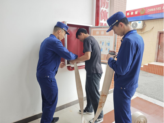 消防技能展示上消防員示范了使用基本的消防工具和設備,水帶連接、水槍操作。此外,學生們還學習了如何正確使用滅火器以及其他初級消防設施。