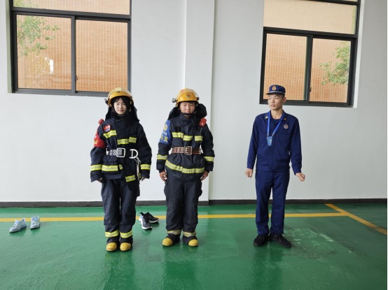 同學們觀看了消防員穿戴戰斗服的全過程,并嘗試親自穿上戰斗服。這一過程不僅讓學生們了解到消防員快速反應的必要性,也讓他們體會到消防員辛苦。