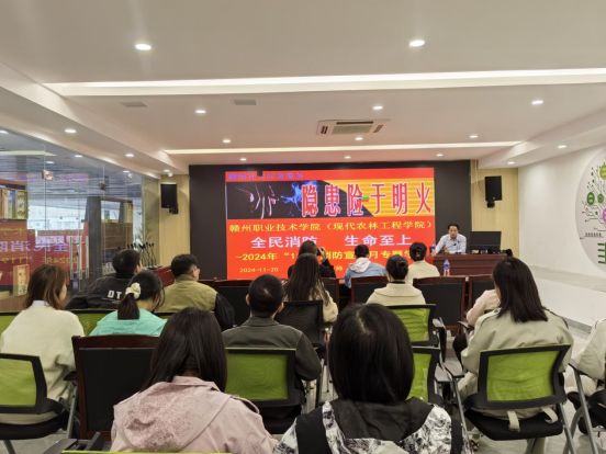 為進一步提升現代農林工程學院師生的消防安全意識和消防素養,11月20日下午,現代農林工程學院在畢昇樓301會議室舉辦了消防安全知識培訓。本次培訓邀請了贛州市社安應急服務何家好老師進行專題講授,為全院教職工傳授了消防安全知識和應急自救方法。現代農林工程學院全體教職工參加了此次培訓。