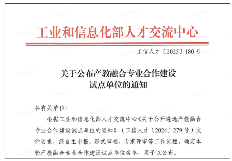 近日,工業和信息化部人才交流中心正式發布《關于公布產教融合專業合作建設試點單位的通知》,經過自主申報、形式審查、專家評審等嚴格流程,我校信息安全技術應用、物聯網應用技術兩個專業成功入選本輪國家級產教融合專業合作建設試點單位名單。