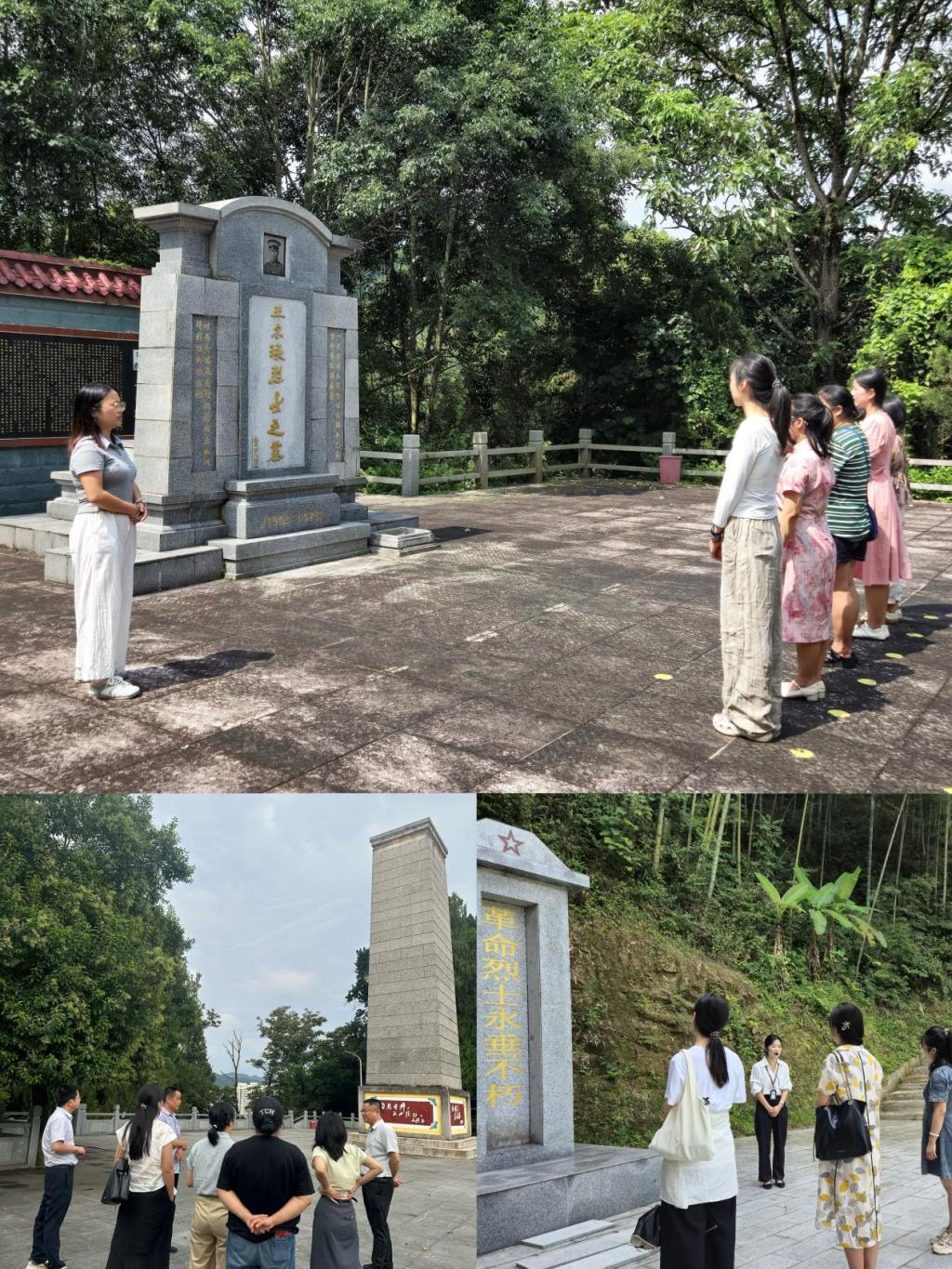 沿著革命先輩的足跡,調研團隊走進崇義縣革命烈士紀念塔、紅軍七烈士紀念碑、虎頭寨紅三軍團文英大捷戰場遺址、王爾琢烈士墓、劉書榕等七烈士墓等烈士安息之地前,調研團隊懷著崇敬的心情,向革命先烈默哀致敬。莊嚴肅穆的紀念塔、烈士墓等,承載著無數英烈對革命的忠貞與不怕犧牲的精神,激勵著調研團隊在思政課上更好地傳承紅色基因,培養學生的愛國情懷和擔當精神。在嚴坑紅三軍團總指揮部舊址、思順新四軍通訊站舊址等革命遺址,調研團隊仿佛穿越時空,回到了那個戰火紛飛的年代,親身感受到了革命先輩們為了民族獨立和人民解放,不惜拋頭顱、灑熱血的堅定信仰和無私奉獻精神。