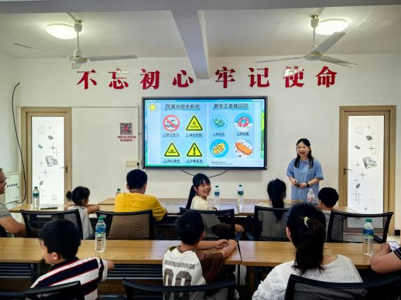 安全知識趣味扎根:隊員們針對兒童群體開設防溺水與消防安全課,創新構建“知識科普+手勢舞教學+手抄報創作+實操模擬”趣味鏈。用生動警示案例講解防溺水與消防要點,借手勢舞強化“遠離危險水域”“火災逃生技巧”等核心知識,引導孩子們用畫筆繪就安全意識,并通過滅火器“提拔握壓”四步實操親身體驗。十分鐘內,“學安防、辨風險、善應對”的安全意識深植童心。這體現了青年智慧在公共安全教育模式創新上的探索。