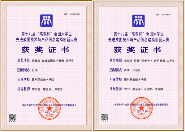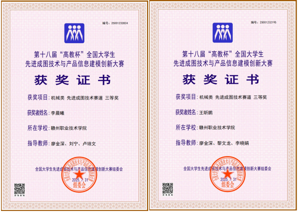 在近期結束的第十八屆“高教杯”全國大學生先進成圖技術與產品信息化建模創新大賽中,我校智能制造學院學子在輕量化設計與AI應用賽道獲全國二等獎1項、三等獎1項,先進成圖技術賽道獲全國二等獎1項、三等獎3項,并獲機械類團體三等獎。