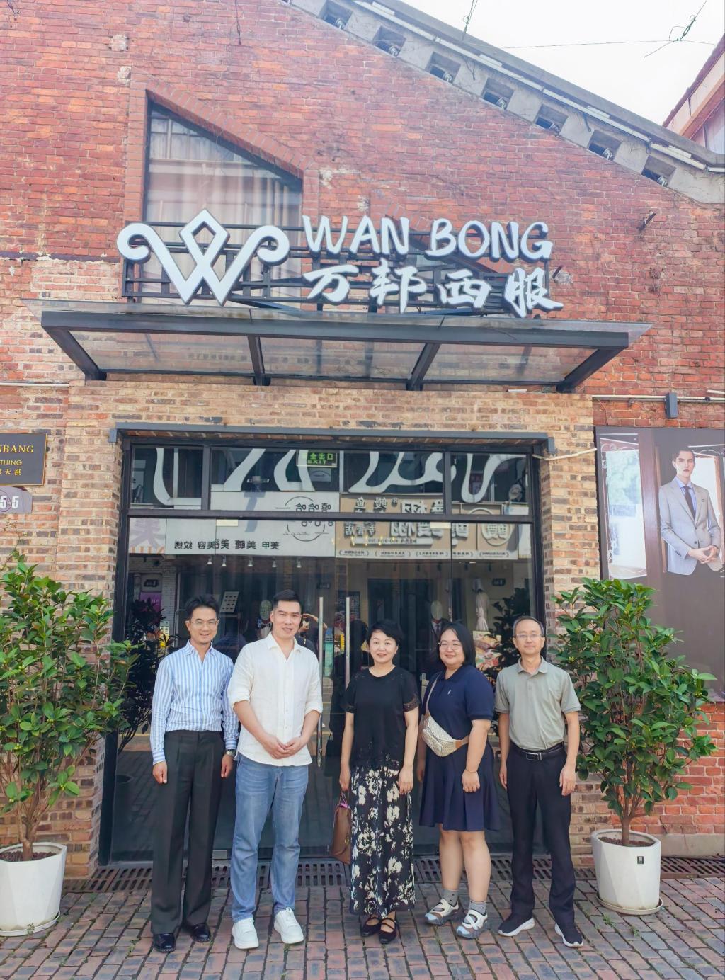 在萬邦天祺服裝科技有限公司,企業負責人楊建華總經理,熱情接待了余萬霞一行,參觀了公司設計部、銷售部、運營部等。楊建華詳細介紹了公司的發展歷程、業務范圍、企業文化以及人才需求等情況。據了解,贛州萬邦天祺服裝科技有限公司在定制服裝設計、研發、生產、銷售、推廣等領域具有豐富的經驗和強大的實力。