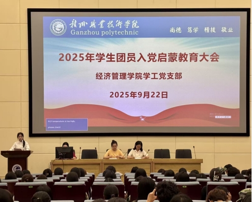 為加強新生思想引領,激發政治熱情,引導廣大新生正確認識黨的光輝歷程和偉大成就,9月22日,經濟管理學院在圖書館報告廳舉行了2025級新生入黨啟蒙教育大會。大會由團總支組織部負責人鄧詩語主持,經濟管理學院2025級全體共青團員及有意愿加入團組織的學生參會。