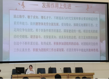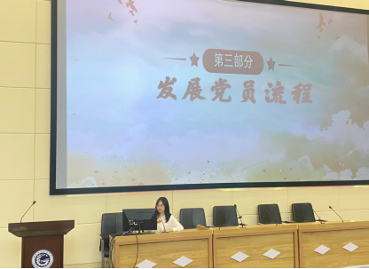 團(tuán)總支指導(dǎo)教師蘭虹老師以“何為推優(yōu)、何以推優(yōu)”為核心,結(jié)合團(tuán)內(nèi)相關(guān)規(guī)定與校團(tuán)委指導(dǎo)意見,系統(tǒng)解讀團(tuán)員推優(yōu)入黨條件。隨后,學(xué)院學(xué)工黨支部書記肖倩老師聚焦發(fā)展黨員流程,為新生團(tuán)員搭建起從“我想入黨到如何入黨”的橋梁。她結(jié)合學(xué)校發(fā)展學(xué)生黨員工作實(shí)施細(xì)則和中國共產(chǎn)黨發(fā)展黨員工作流程,通過五階段二十五步的清晰梳理,詳細(xì)講解從入黨申請(qǐng)人到正式黨員的全流程。最后,作為優(yōu)秀學(xué)生代表的彭一泠同學(xué)結(jié)合自身經(jīng)歷,分享了入黨心路歷程、社會(huì)實(shí)踐和專業(yè)學(xué)習(xí)心得。