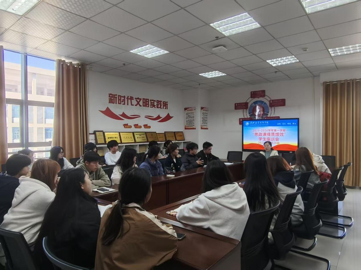 座談會上,同學們放下思想包袱,積極發言,結合各自的學習經歷分享了真實感受與體會。大家一致肯定了思政課在時事政策解讀、紅色經典故事講述等環節中所帶來的思想啟發與價值引領,同時也坦誠地提出了若干建設性意見:希望課程內容能夠進一步貼近專業背景與生活實際,增強教學的針對性與親和力,避免單純的理論灌輸;建議創新教學形式,引入情景模擬、紅色主題劇本演繹等互動環節,以激發學生參與熱情,提升課堂互動效果;并期待拓展實踐教學渠道,組織學生走進紅色教育基地、鄉村振興實踐現場等開展沉浸式學習,增強體驗感與獲得感。現場交流氣氛熱烈,所提建議務實中肯,為思政課教學質量提升提供了來自學生視角的寶貴參考。