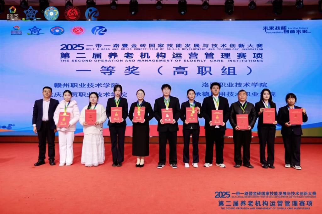 11月28日至11月29日,2025“一帶一路”暨金磚國家技能發展與技術創新大賽第二屆養老機構運營管理賽項決賽在重慶工貿職業技術學院舉辦。我校現代服務學院選派的學生代表隊劉子軒、湯穎芳、張悅團隊榮獲一等獎第一名。