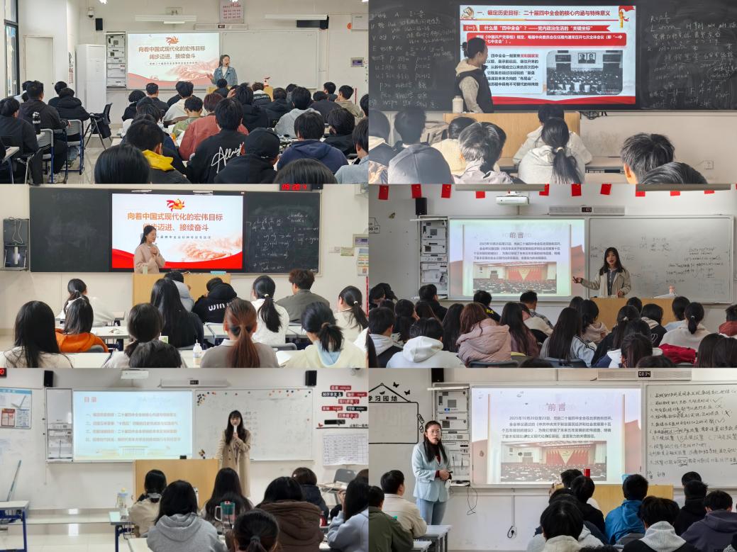 為引導(dǎo)青年學(xué)子深刻把握黨的二十屆四中全會精神實(shí)質(zhì),將個人成長融入中國式現(xiàn)代化建設(shè)宏偉征程,近日,我校馬克思主義學(xué)院組織思政課教師以“向著中國式現(xiàn)代化宏偉目標(biāo)闊步邁進(jìn)、接續(xù)奮斗”為主題,深入各班級開展專題宣講活動,推動全會精神進(jìn)校園、進(jìn)課堂、進(jìn)頭腦,引導(dǎo)學(xué)生以青春之力賦能民族復(fù)興。