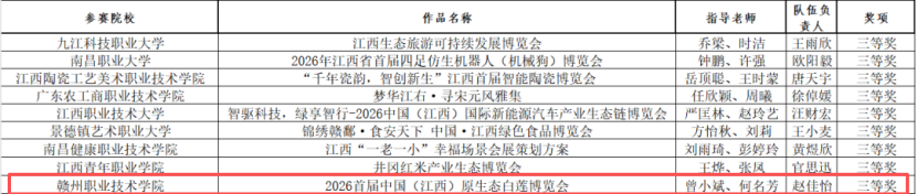 據悉,本次大賽共分為會展項目策劃、會展設計、國際展會推介(英語)三個賽道,本科組(研究生)和高職組兩個組別。經大賽評審委員會評審,最終共有120支隊伍成功晉級總決賽,我校參賽隊伍憑借初賽優異成績成功晉級總決賽,參與最終獎項的角逐。現代農林工程學院趙佳怡、劉文靜、劉文燕、李銀濤、黃奇進(指導老師:曾小斌、何名芳)憑借突出的創新能力、靈活的變通能力和出色的團隊協作在全國眾多參賽隊伍中脫穎而出,最終榮獲會展項目策劃賽道三等獎。