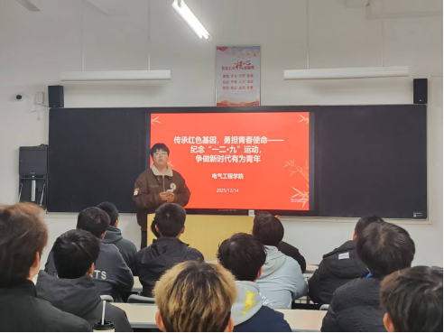 為紀念“一二·九”抗日救亡運動,激勵青年學子銘記歷史、傳承精神,12月14日,電氣工程學院團總支在魯班樓325教室組織開展了“一二·九”歷史故事分享主題團日活動。學院團總支成員及各班級團支部團員代表參加活動,活動由團總支書記龔成懿老師主持。