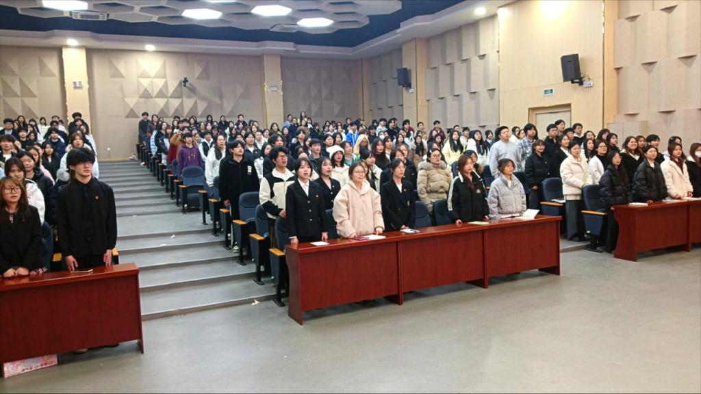 入團儀式在莊嚴的《義勇軍進行曲》中拉開序幕。今年正值“一二·九”運動紀念日,學院特意選擇在這一具有歷史意義的日子舉辦入團儀式,引導廣大青年團員銘記歷史、繼承傳統、勇擔時代使命。許慧媛老師嚴格按照《中國共產主義青年團發展團員工作細則》相關規定,鄭重宣讀2025年度新團員入團決定及名單,現場響起持久而熱烈的掌聲,歡迎新成員加入共青團這一先進青年組織。