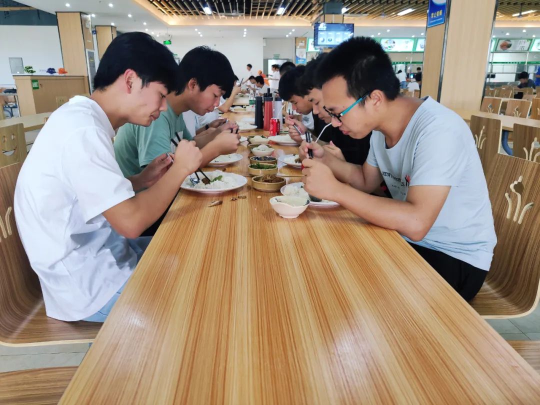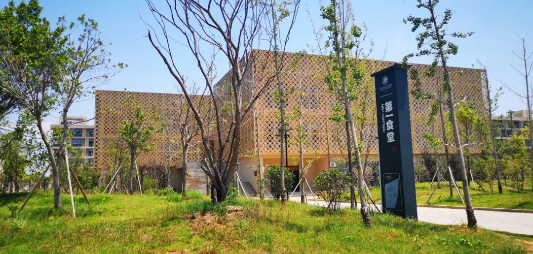 沿著行知大道往前走,你會看到兩棟金色鏤空大樓,這就是我們最喜愛的地方——食堂,學院食堂菜品豐富、物美價廉,各種各樣的美食數不勝數,香氣撲鼻,令人垂涎欲滴。
