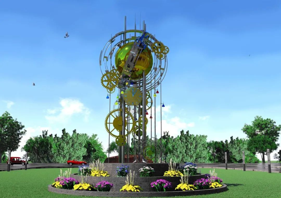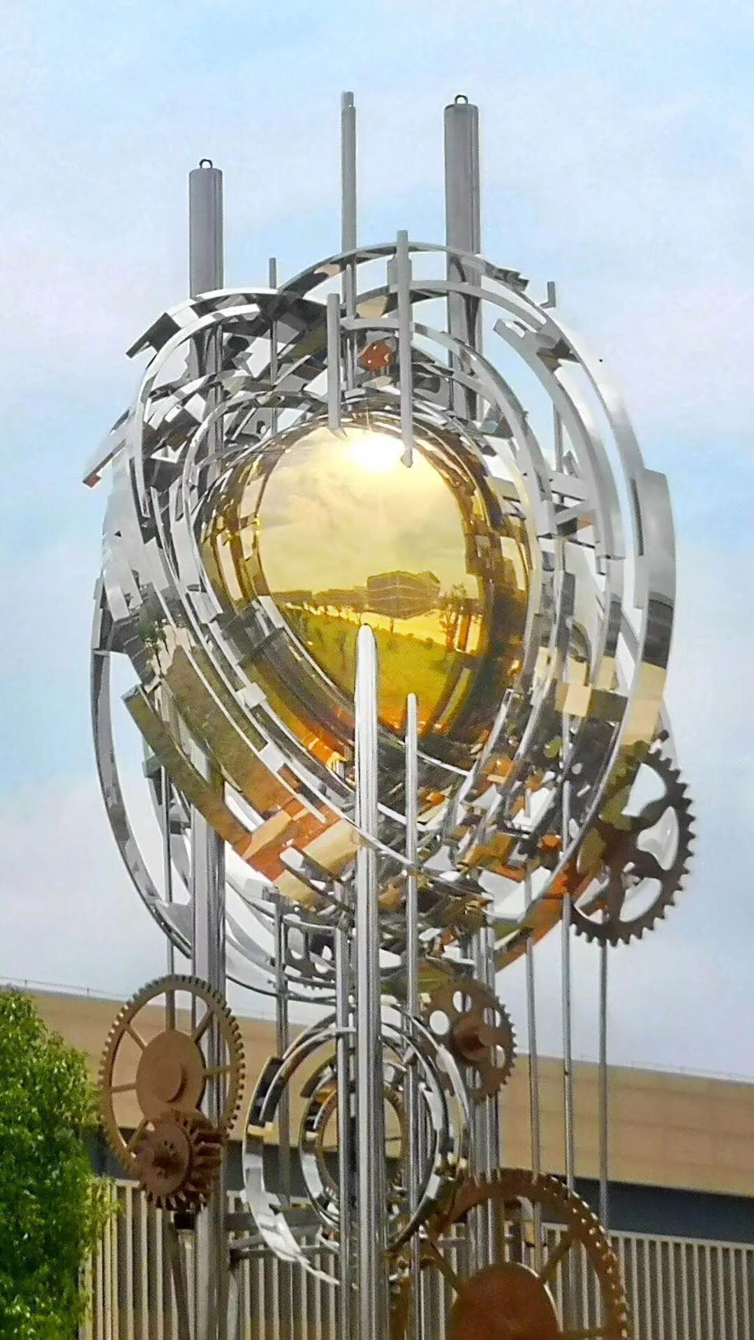 再往前走,你會看到學院的標志性雕塑——贛職朝暉,它是由“齒輪、互聯網、錐形燒瓶”作為主體,充分展現了“點、線、面”的完美結合,力與美的統一。