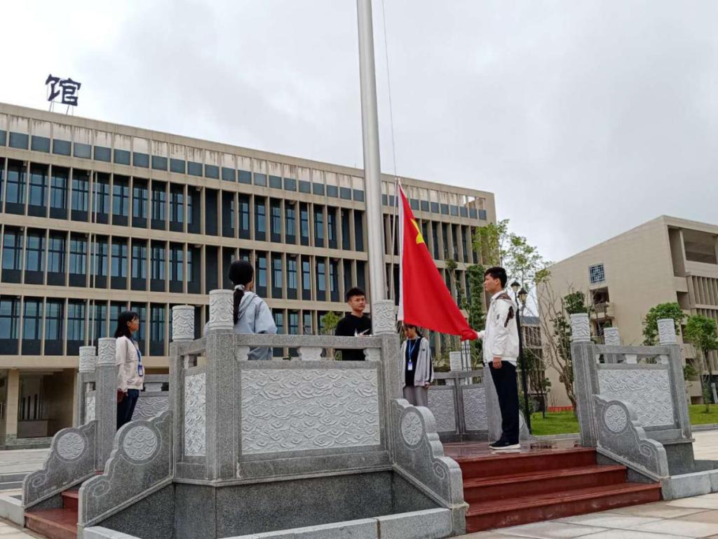 隆重的升旗儀式上師生共唱國歌,五星紅旗冉冉升起,國歌聲響徹整個校園。