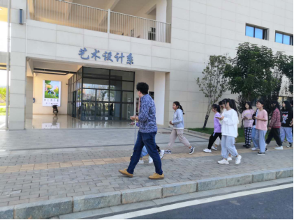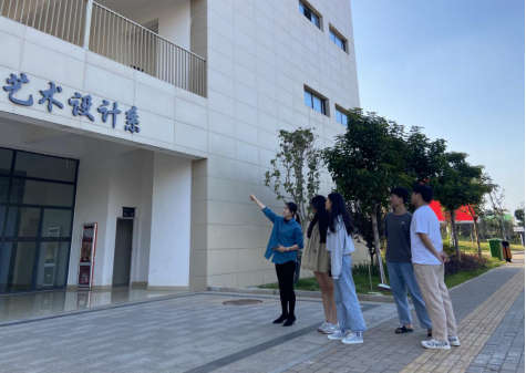 藝術設計系班主任帶領學生熟悉了解藝術設計系的教學樓