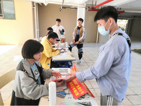 在藝術設計系的教學樓里,有教師們專門為本次迎新工作謀劃部署、設計制作的整套有關于學校風光、校園生活以及專業介紹的展示板,既保證了功能性,又突出了專業特色。