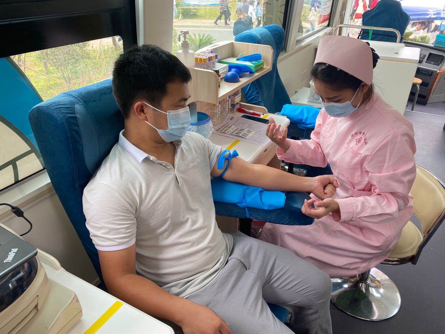 (胡劍老師前往獻(xiàn)血希望隨輸血袋流向需要的人)