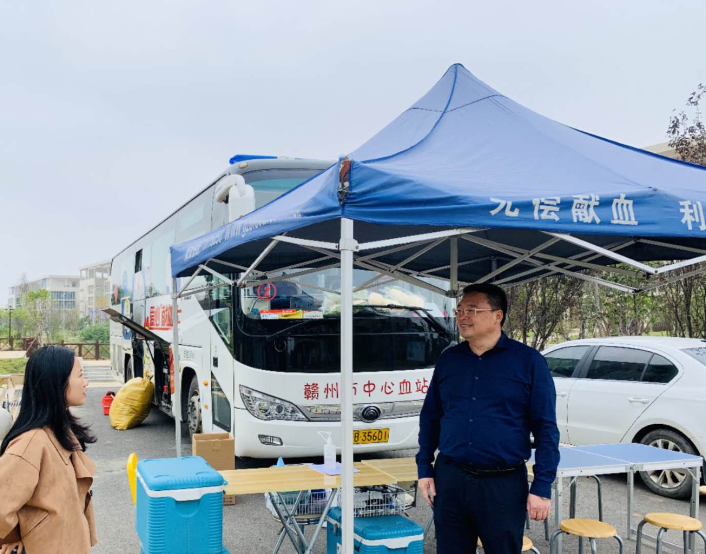 (院領(lǐng)導(dǎo)前往獻(xiàn)血現(xiàn)場支持鼓勵師生獻(xiàn)出愛心)