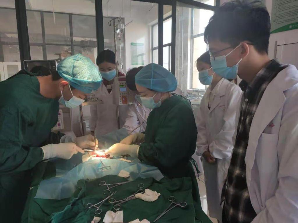覃帥醫生參觀了動物科學系實驗實訓場所,對學院專業建設情況給予了高度評價,并就學生在‘雄鷹杯’技能大賽培訓過程中的遇到的問題進行深入淺出的講解,并予以手術指導。