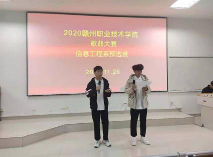 為繁榮校園文化生活,努力營造積極向上、健康文明校園的文化氣氛。為學生提供展現才華的舞臺,信息工程系于11月24日晚及11月26日晚分別舉辦了校園大合唱比賽信工系預選賽和校園歌手大賽信息工程系預選賽,此次活動分別在各班教室及A2階梯教室隆重舉行。擔任此次比賽的評委有信息工程系王觀燕、劉康興、楊盛欽等老師和部分學生干部。