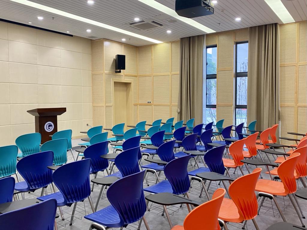 行知樓二層130座中型會議室,可滿足中型以上的會議需求,含電子顯示屏、無紙化會議系統、多媒體音視頻信號源、音響等設備。