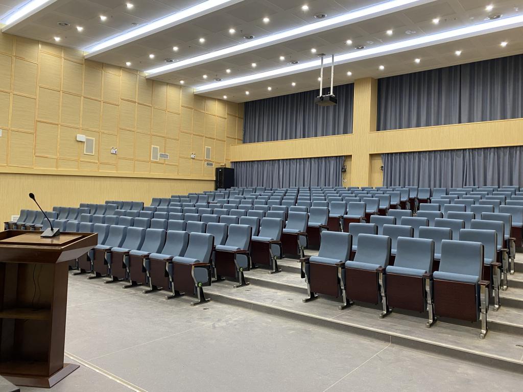 行知樓一層824座多功能會議廳其功能定位為一個多功能的使用空間,可滿足召開大型學術會議、報告會、大型文藝演出等使用要求;配套電子顯示屏、擴聲音響系統、舞臺燈光系統、舞臺機械,以及燈光、音響、機械等設備。