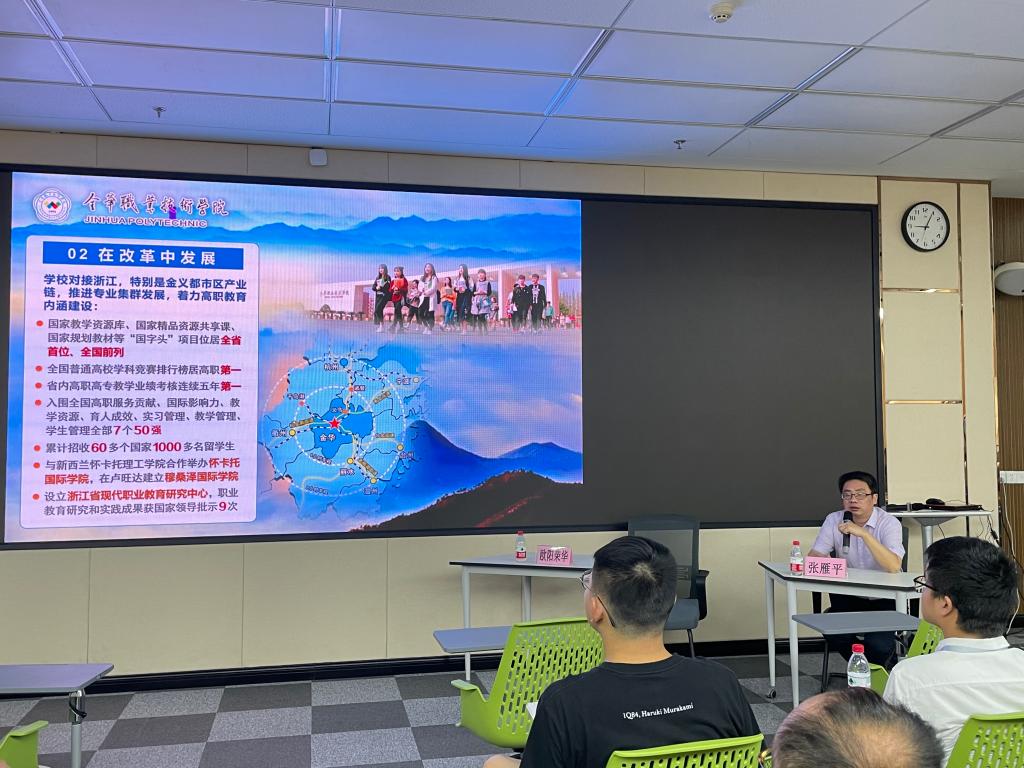上午,金華職業技術學院黨委委員、教務處處長張雁平研究員受邀開展學術講座。張雁平以《以專業建設為核心的目標考核與教學創新項目載體設計》為題,從專業建設目標考核、專業綜合測評與動態調整、特色專業領航計劃、“雙優”“雙培”“雙改”計劃等8個載體分別闡述了高職院校對接地方產業發展、實現地方高職院校優質提升和創新發展的路徑和實現措施。他以金華職院為例,詳細介紹了如何將目標管理納入學校專業建設目標考核,對我校實施專業建設改革和課程建設改革起到了很好的啟發。