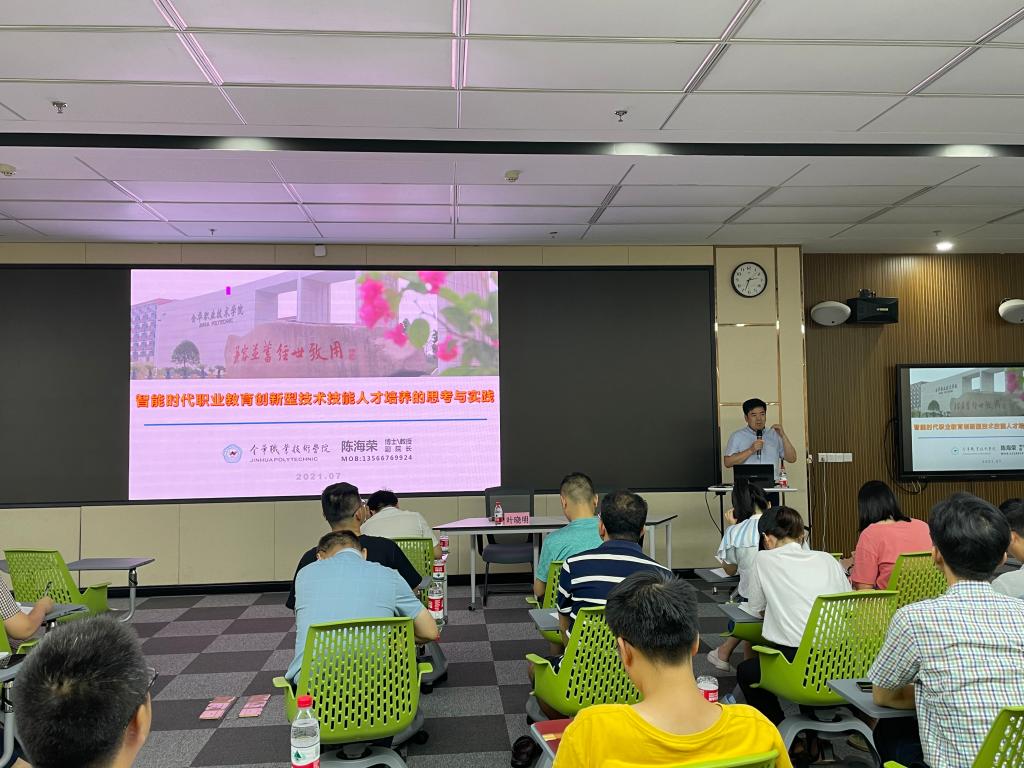 下午,金華職業技術學院副院長陳海榮教授做了《智能時代職業教育創新型技術技能人才培養的思考與實踐》專題報告,深入闡述了適應產業變革,深化高職人才培養理念、重能力揚個性,探索分流分層人才培養和對接世賽標準,實施賽教融合課堂改革等三方面的內容。他指出,必須通過突出專業規劃和課程教學的科學性和精細化,追求教學效果與效率,著力體現高職教育本質屬性,以實踐能力培養為導向,強調可持續發展,通過不斷改進的教學過程,保證培養目標的順利實現。