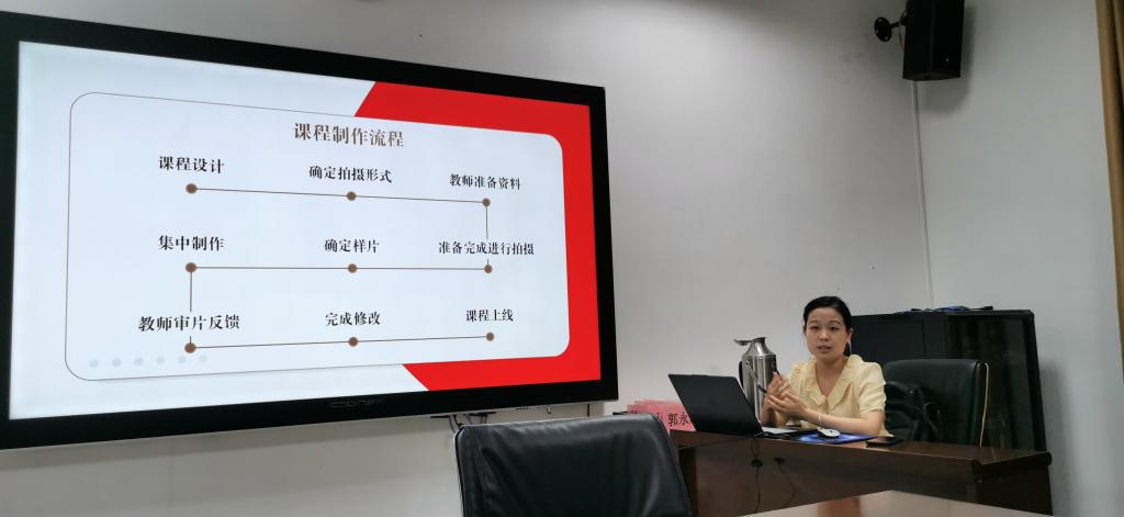 培訓會上,培訓專家從團隊組建、課程設計、腳本編寫課程拍攝、后期制作、上線運行等方面,對課程建設流程展開培訓。參訓人員根據專業特點,提出許多問題,與制作團隊進行溝通交流。